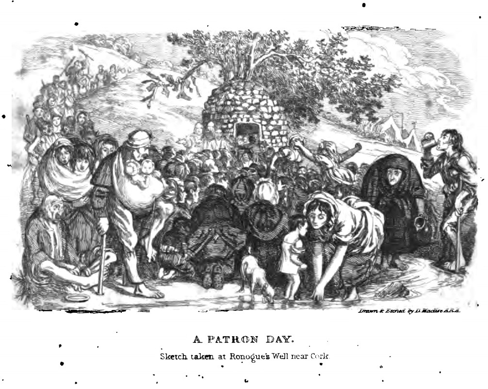It is ironic that, in fact, major reform efforts were underway within the Catholic Church at the same time, to depress the more exuberant of the old traditions of patterns at holy wells and seasonal celebrations, or to convert them into Marian feast days (Lughnasa, for example, was conflated with the Assumption of the Virgin Mary on August 15). For an excellent description of the goings-on at Patterns, see this post from Holy Wells of Cork. The great scholar John O’Donovan wrote in 1837 the priests, I am sorry to see and say, [are] inclining very much to Protestant notions, and putting an end to all. . . venerable old customs. William Wilde (father of Oscar and a noted antiquarian and folklorist) bemoaned, The tone of society is becoming more and more “Protestant” every year. . . The priests. . . have condemned all the holy wells and resorts of pilgrimage. (Both quotes from K Theodore Hoppen’s Ireland Since 1800: Conflict and Conformity.)