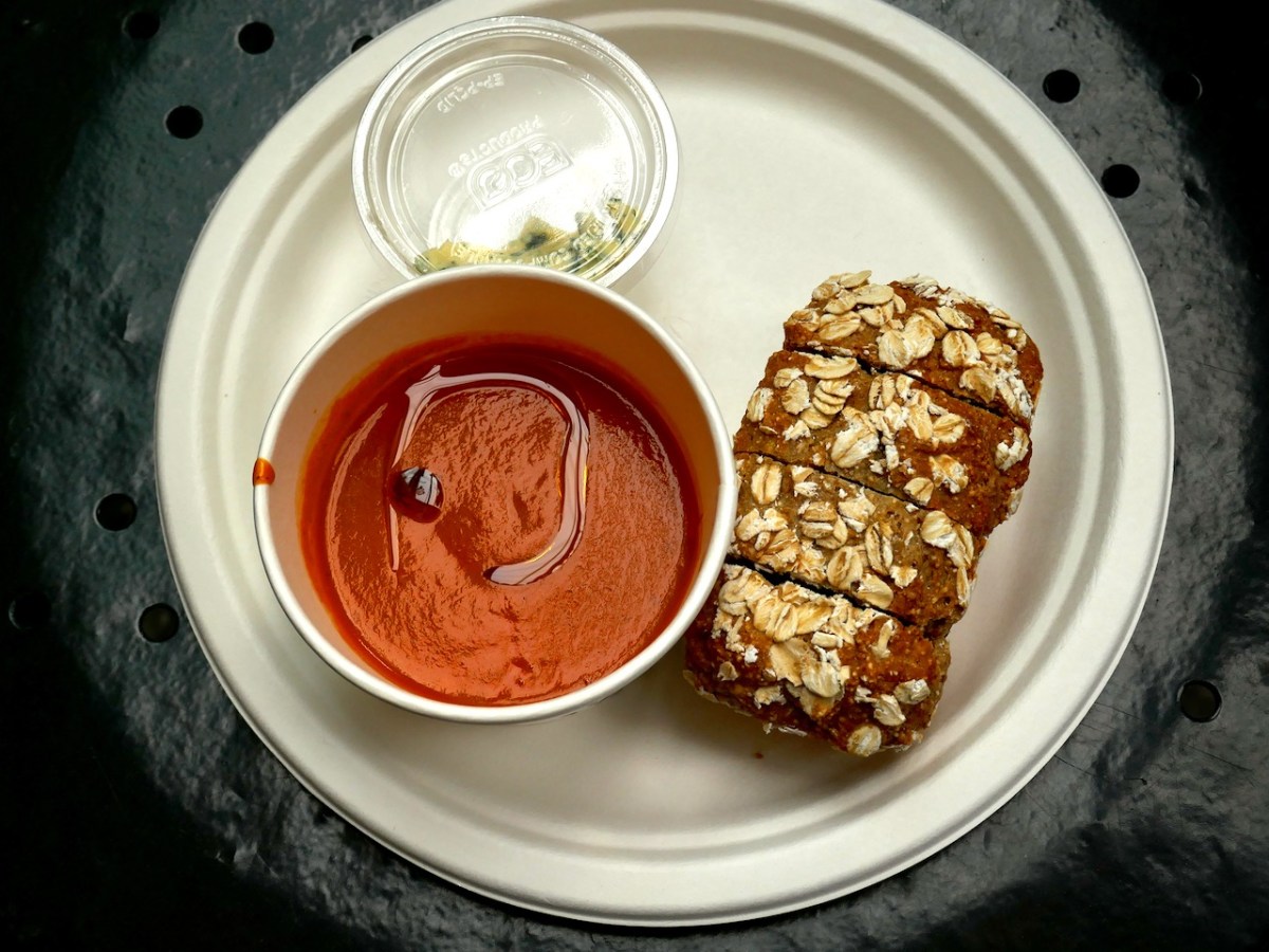 Of course, in the best tradition of here’s one I made earlier there was a big pot of soup on the hob, and lots of little loaves of brown bread with herbed butter.
