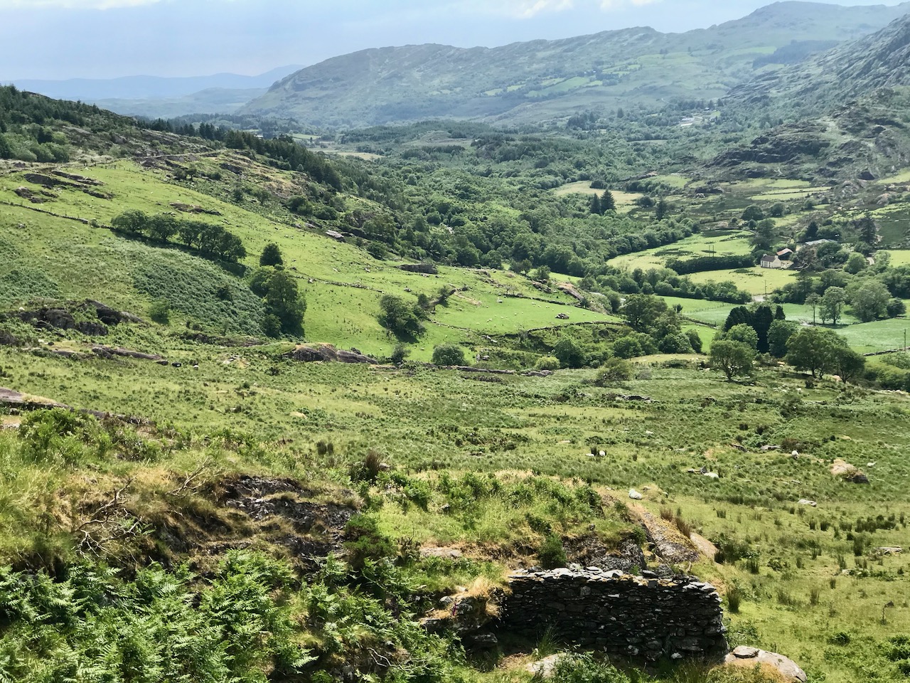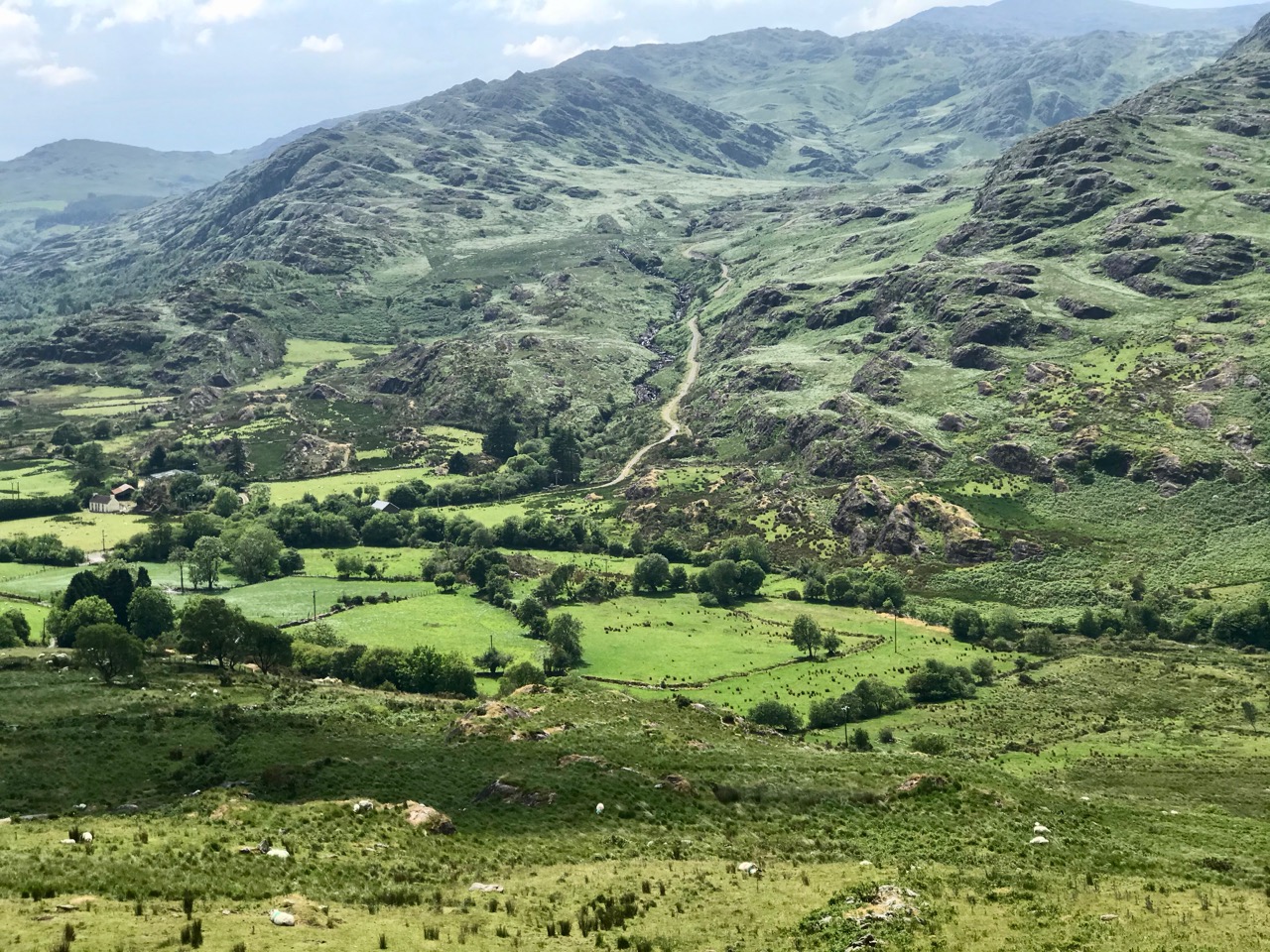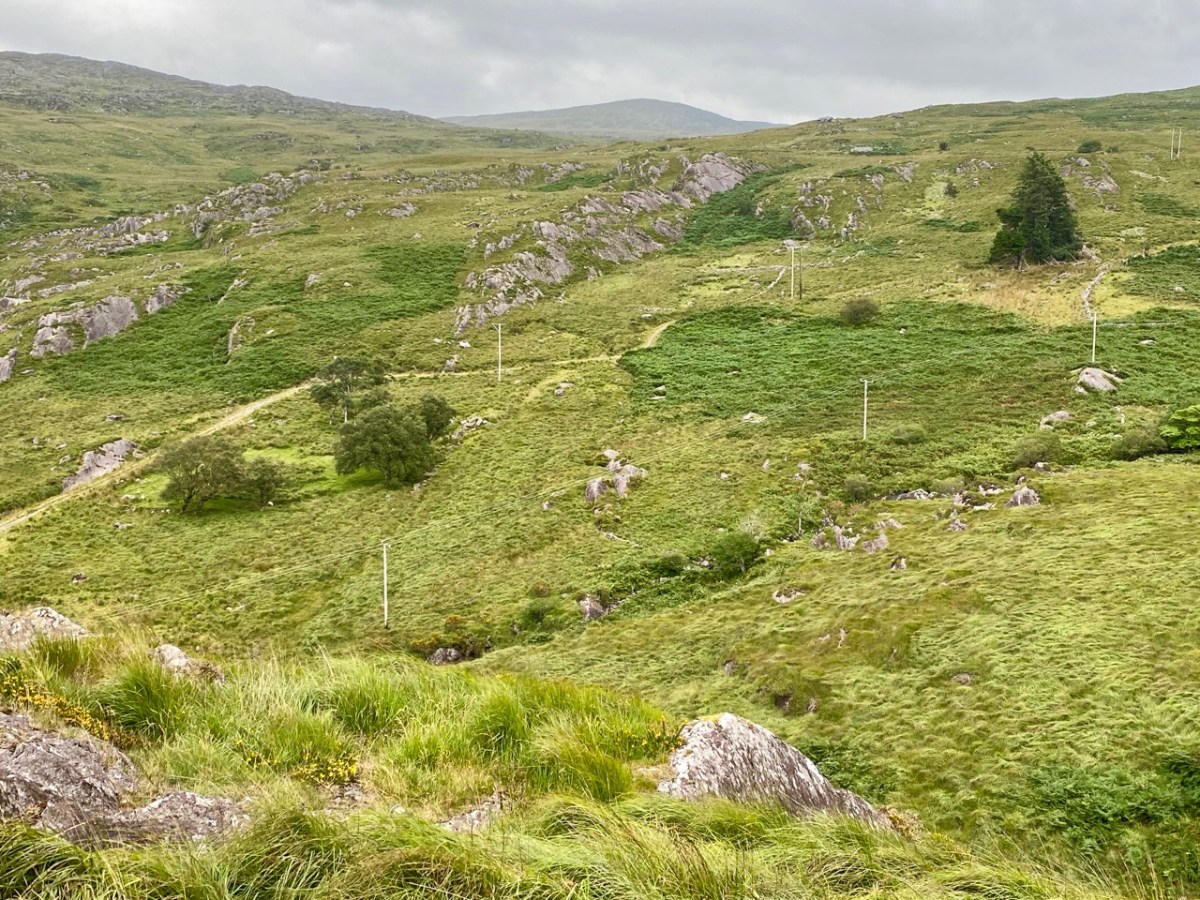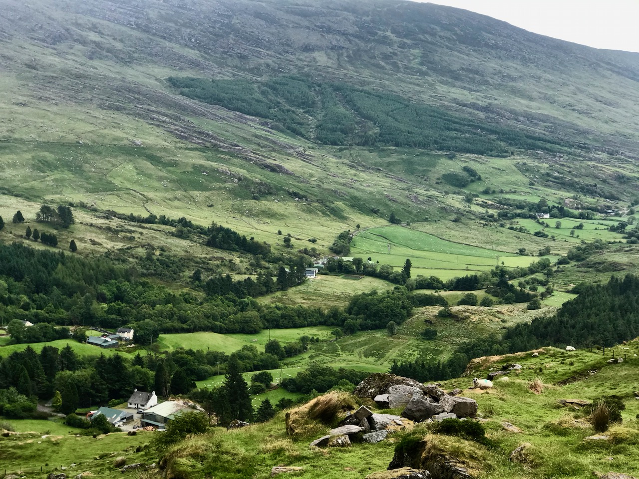 From the highest rim of Borlin Glen (upper picture), the Comhoola River valley is laid out below. Home to sheep and ravens, the scattered farmsteads emerge from rock and forest and provide a living – as they have for countless generations – to a hardy people.