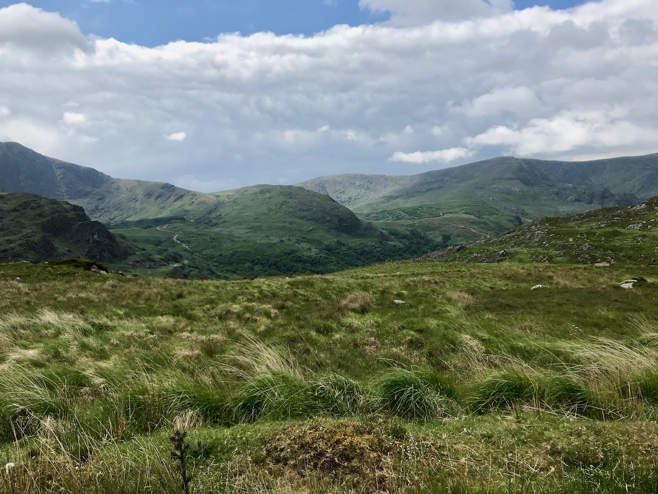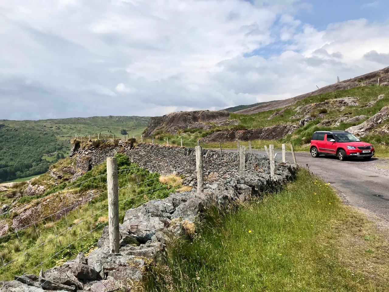 Here’s a post I published in June last year – only 15 months ago. Many of you will remember it. I’m repeating it in order to remind you of the beauty of this particularly remote corner of West Cork and Kerry. We travelled this byway again last week, and were surprised to notice how ‘raw’ the landscape seemed in places. This is partly because a new roadway has been made down through the valley to serve local property. But also I was struck by the number of power lines which go through the area.