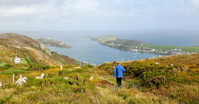 Technically, the places we explored are in three different townlands – Tooreen, Arduslough and Leenane, but mostly they fall within the boundaries of Arduslough. The name has been variously translated – Árd means high place and Lough means lake, both of which seem appropriate, but in fact the placename authority, Logainm, renders it as Árd na Saileach meaning High Place of the Sallies, or Willow Trees. Not much in the way of willows is obvious now, but the lake is certainly central to your view in the townland.