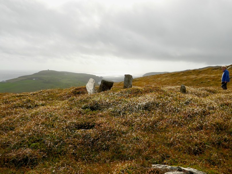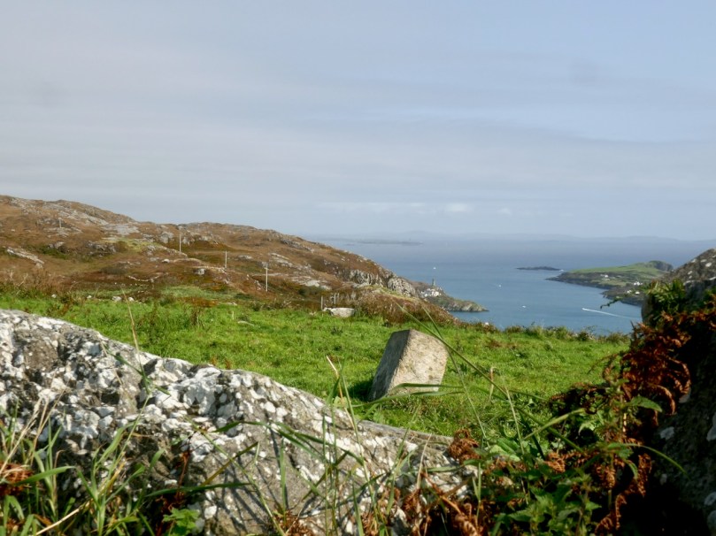 We headed up to the high ground west of the lake to find the one that local people still call the Giant’s Grave. What a spectacular setting this is! First of all, you are now on a plateau with panoramic views in all directions. West lie the two peninsulas of Brow Head and Mizen Head and the boundless sea beyond.