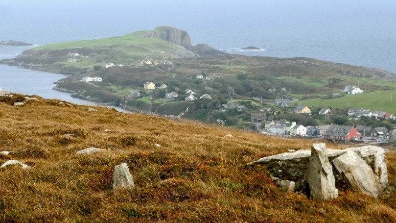 For a relatively small area, Arduslough abounds in archaeological monuments – there are four wedge tombs, three cupmarked stones, a standing stone and a piece described as either an Ogham Stone or Rock Scribings, depending on what you read. The remains of old cabins dot the landscape too, reminding us that this was a much more populous place before famine and emigration decimated the population.