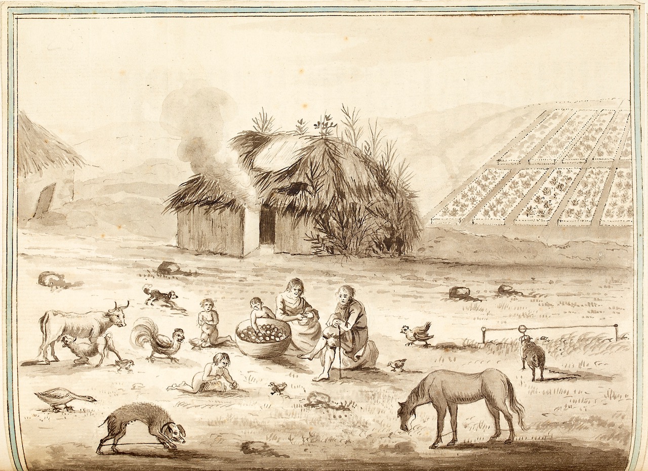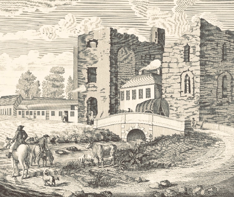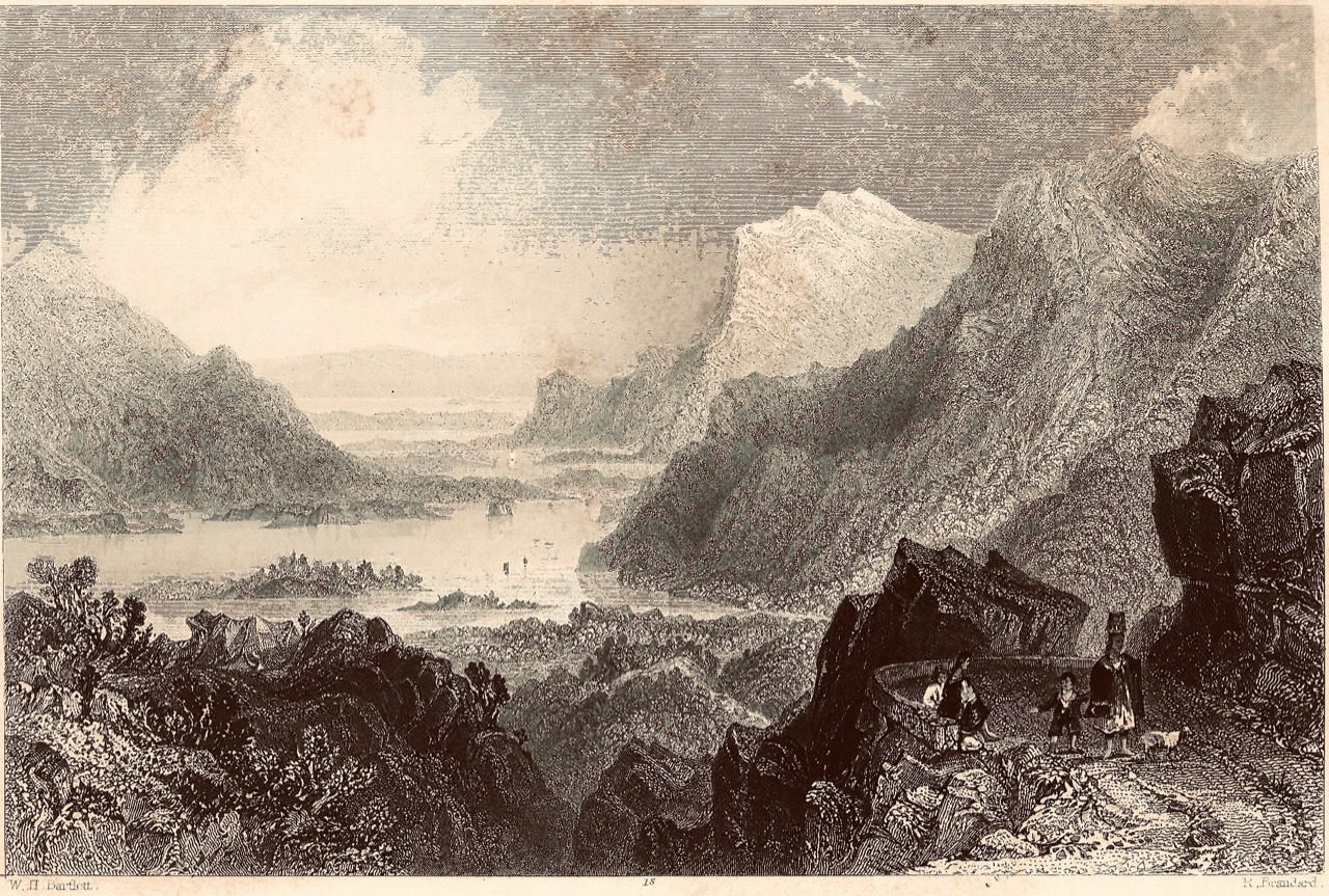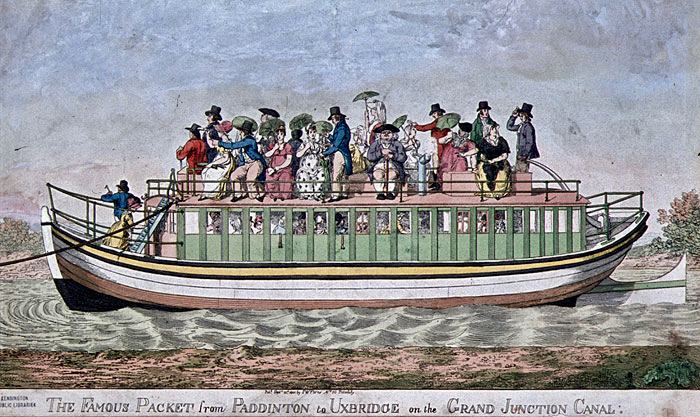 Top – early print of the Leinster Aqueduct, Grand Canal; lower – the Rolts pause to admire the structure as they cross the Liffey on the aqueduct