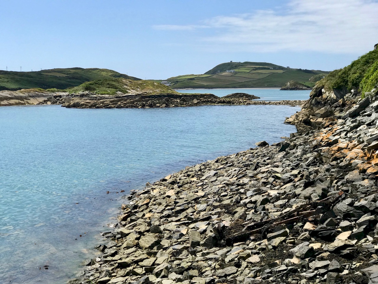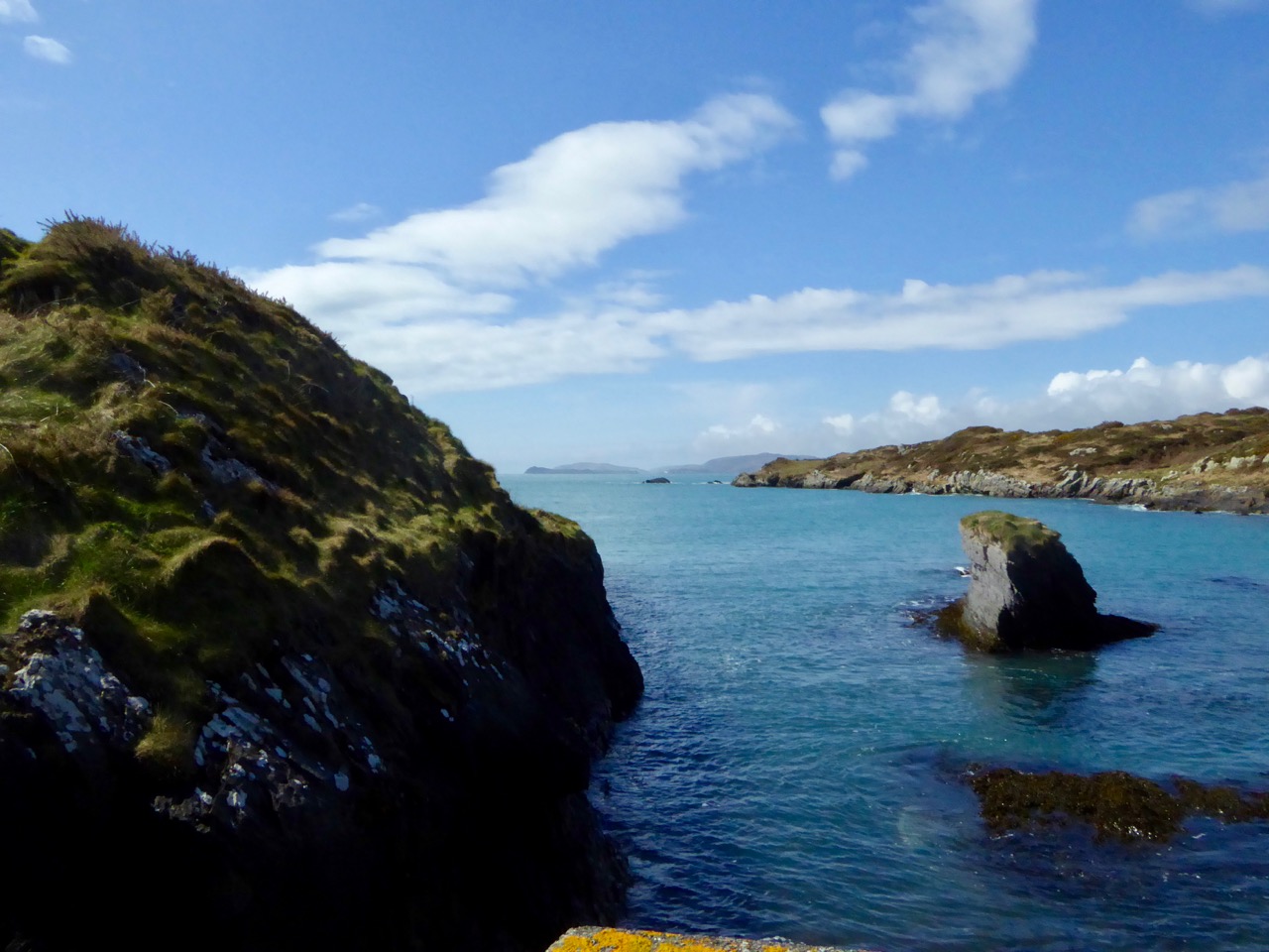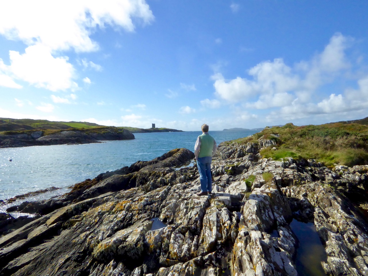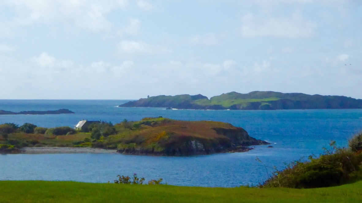 Like all the O’Mahony castles, it was strategically sited – it was beside the waters that separates the island from the mainland, and within sight of two other castles – Rossbrin and Ardintenant. The three form a triangle that overlooked and guarded the sheltered waters of Castle Island Channel. But also, from the top of the castle, there would have been a clear view south across the low land in the centre of the island, out to Roaringwater Bay.
