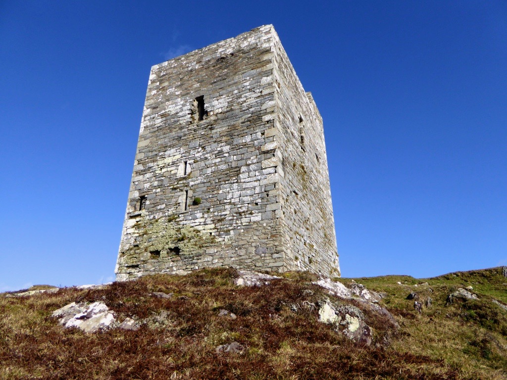 Fragmentary remains is the phrase used in the National Monuments record to describe the two castles which are the subject of this post – Dunbeacon and Castle Island. In each case only enough is still standing to confirm that it was indeed a medieval tower house. Fortunately, in the case of Dunbeacon, there is also historical evidence.