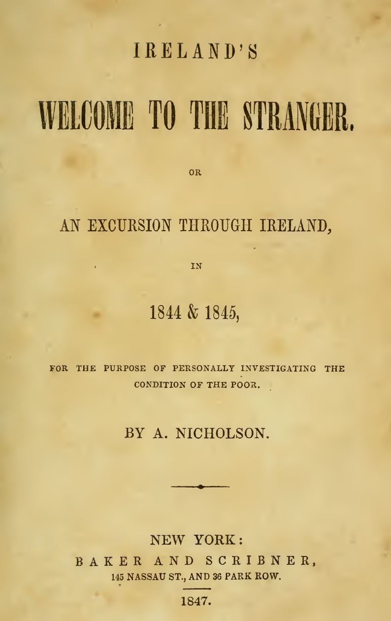 As I discovered, there is actually quite a lot about Asenath available online, much of it centred on the research of Maureen O’Rourke Murphy of Hoffstra University, who has written the definitive book on Nicholson, Compassionate Stranger, as well as editing Asenath’s own writings for re-release. Prof Murphy has provided a piece about the book to Irish Central, and the book itself has been comprehensively reviewed in the Irish Times by Christine Kinealy, Director of Quinnipiac’s Great Hunger Museum. Both of these articles summarise Asenath’s life and the significance of her account of her time in ireland, so pop over there now for a quick read, and then come back here. There is also a lecture by Prof Murphy online (entertaining and erudite), as well as a very well-done radio documentary (although I can’t find out who produced it). These take a bit longer so save them for later.