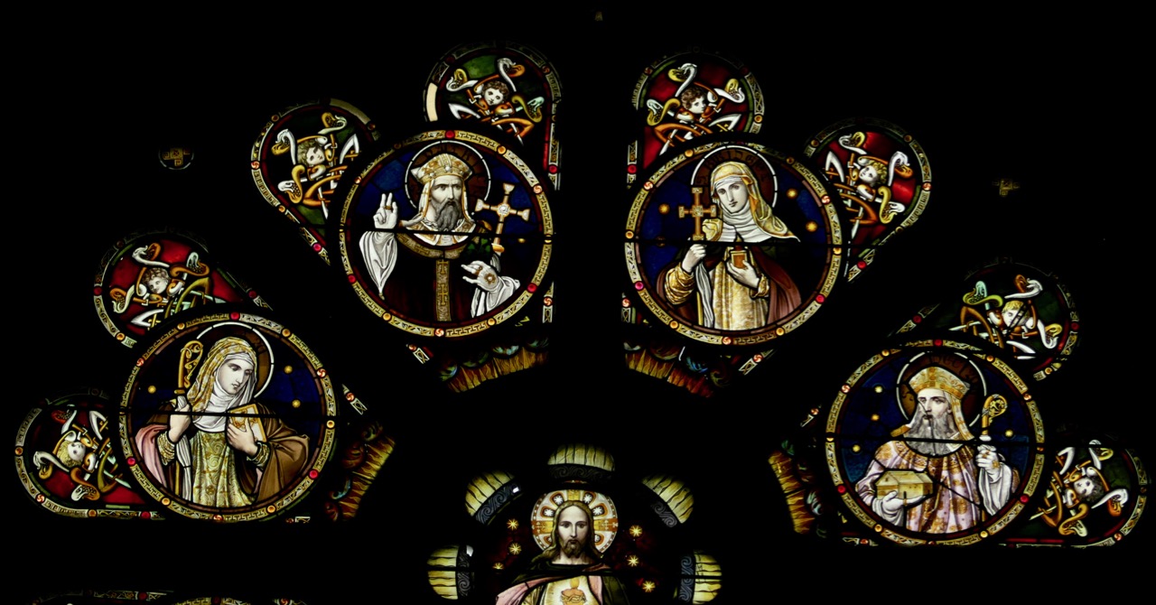 Today we honour St Brigid as one of the founding great women of our culture. She is often shown with Patrick and Columcille as one of the three great Patrons of Ireland. In the window above, also from Killarney Cathedral, Brendan has been added in because, well, we’re in Kerry.