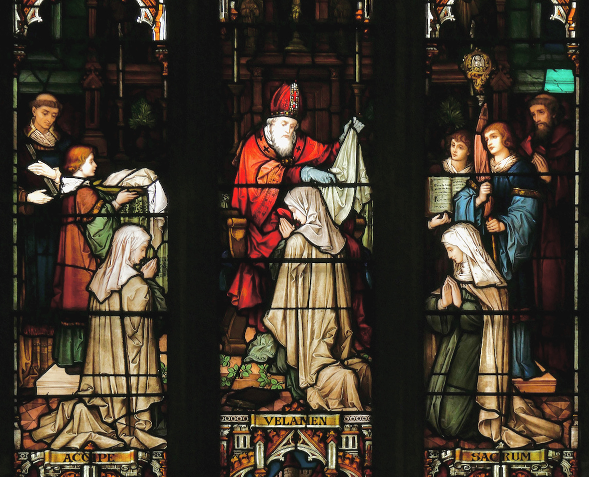 Brigit, inspired from above and wanting to devote herself as a chaste virgin to God, went to the most holy bishop MacCaille of blessed memory. Seeing her heavenly desire and modesty and seeing so great a love of chastity in this remarkable maiden, he placed the white veil and white garment over her venerable head.