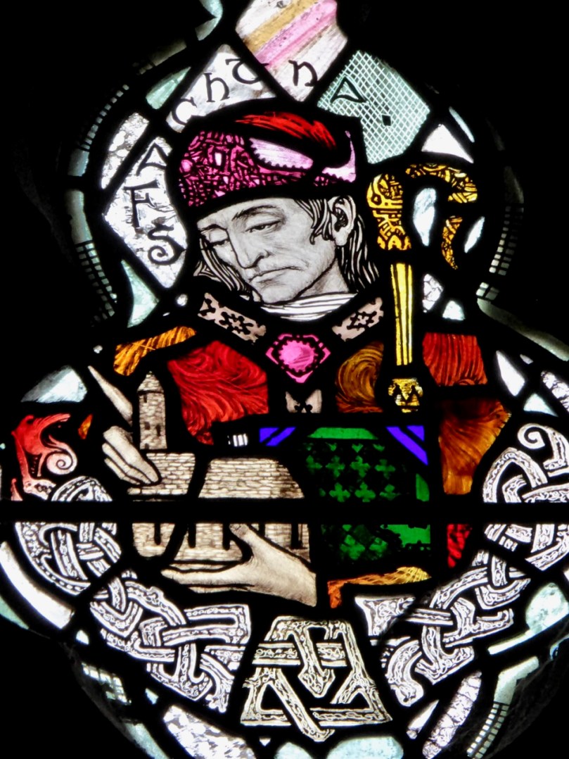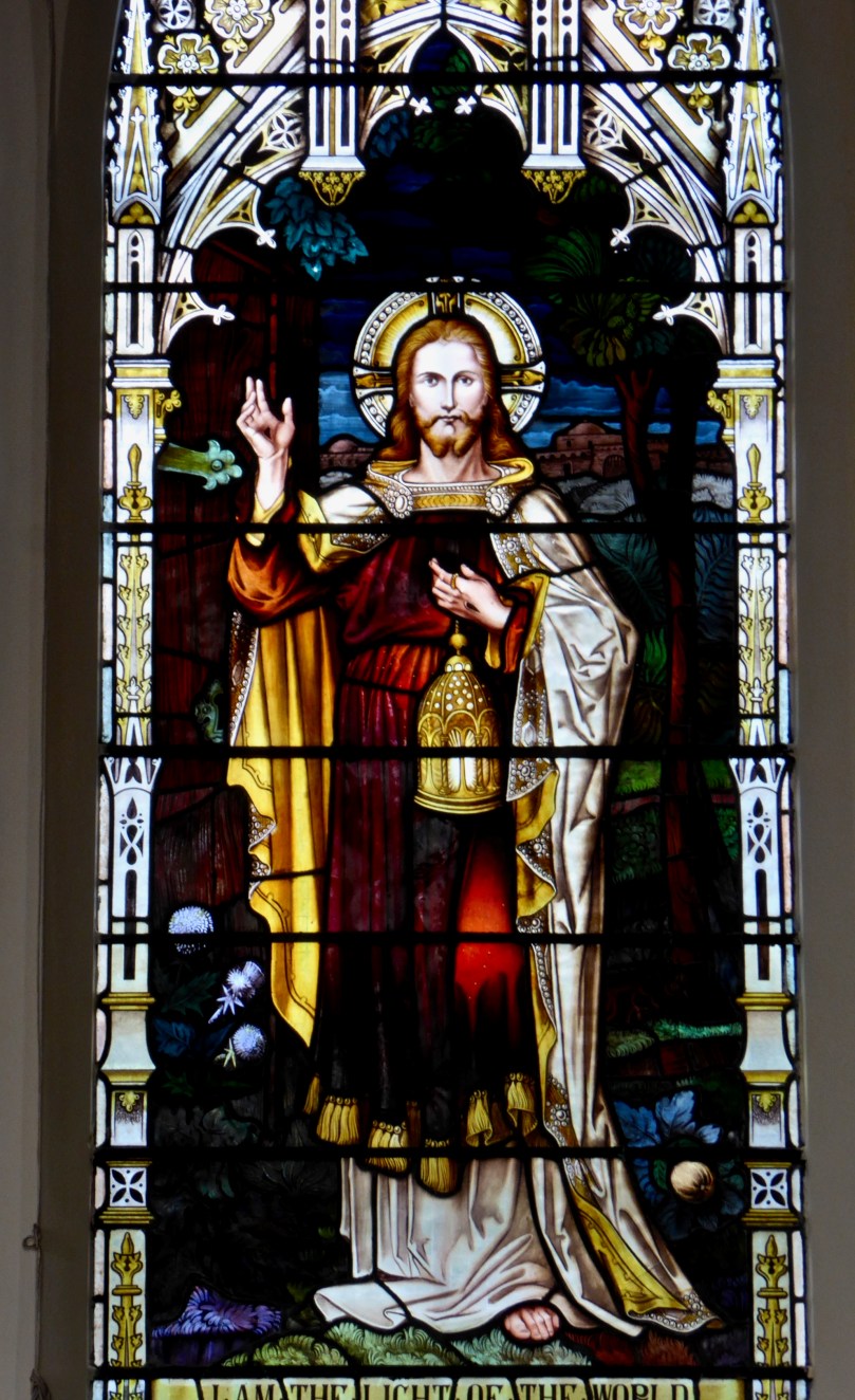 It’s a real thrill to come across a window that is based on one of those designs: see above and below for a perfect match! Incorporation of interlacing can also help to identify an un-signed window as being a Watson: it was what set them apart, when the figures themselves – the saints or angels – might be well-nigh indistinguishable from those of other stained glass manufacturers.