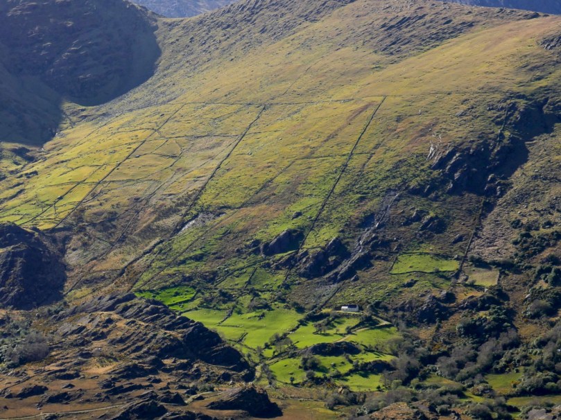 But if you look closely, this photograph also shows the old field patterns from tiny holdings long ago, including the lazy beds – ridges left from cultivating potatoes by hand.