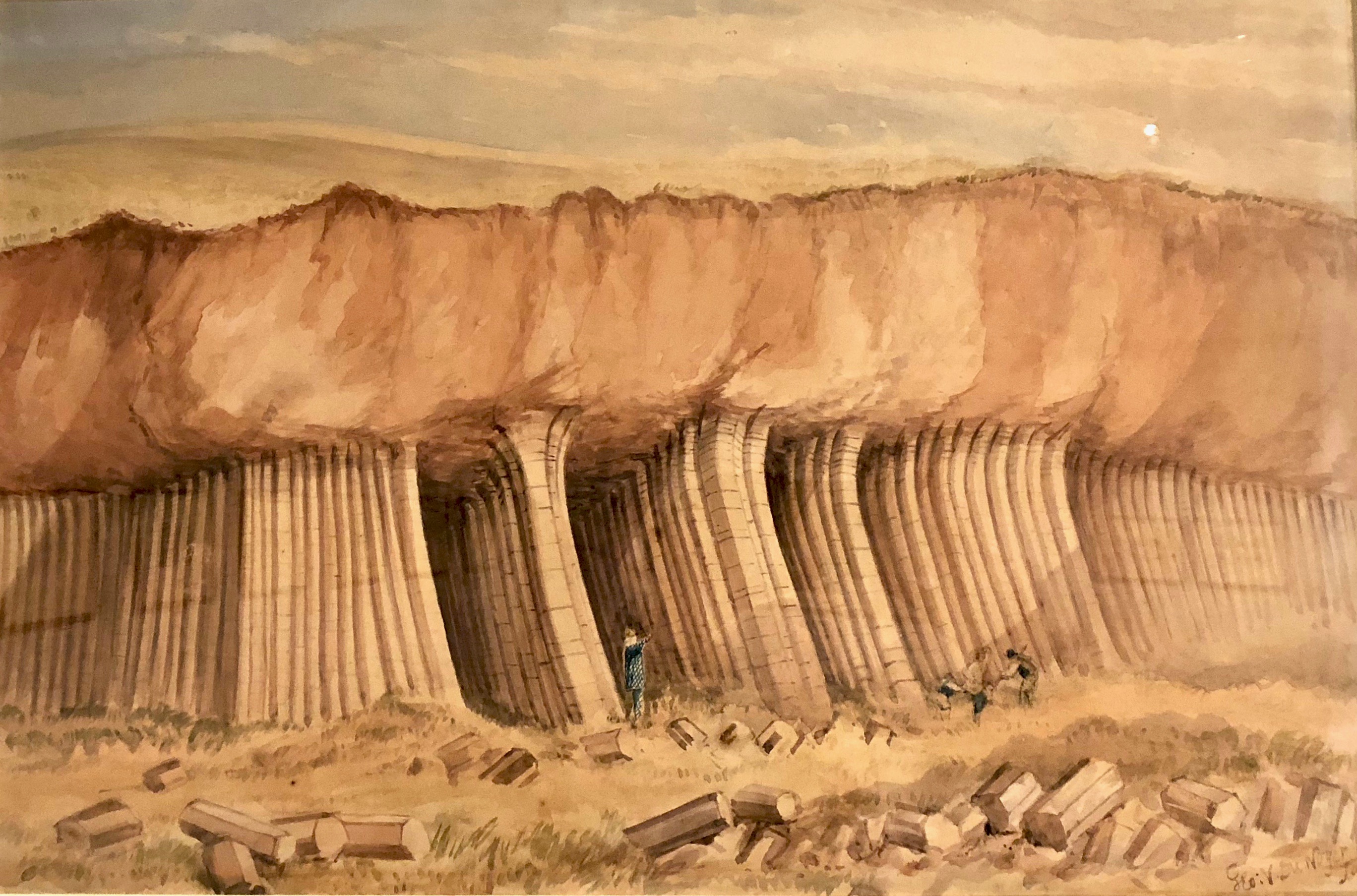 This is an important example of Ireland’s Rock Art, from West Cork, perhaps dating from 5,000 years ago: it was discovered in comparatively recent times. The painting is by Keith Payne, and is an interpretation of this same rock outcrop. We have no evidence that the carvings were ever coloured – or pigmented.
