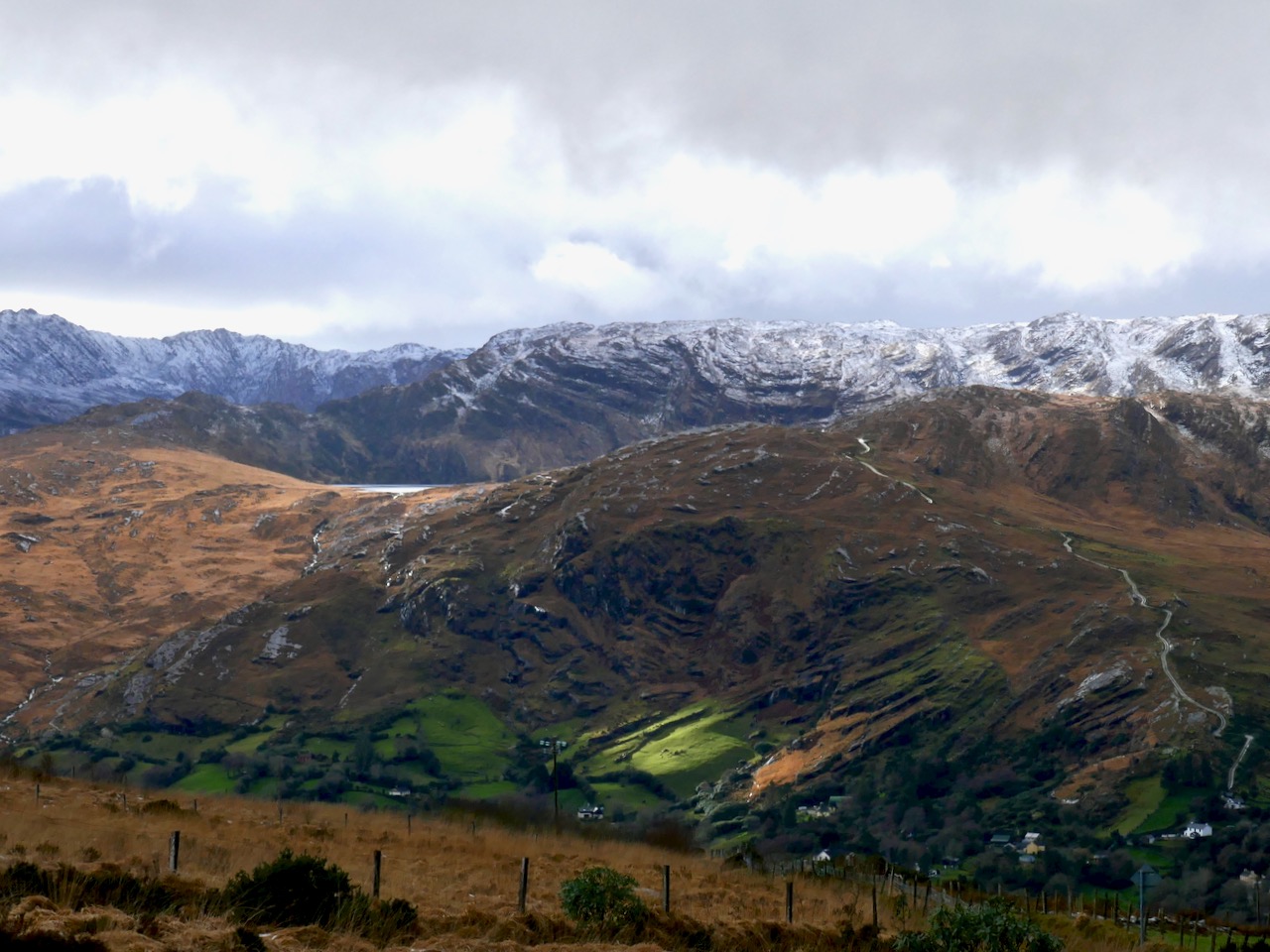 Early in the new year we clambered around Mount Gabriel, looking for the fabled Cauldron Pool. We found it, with Schull stretched out below.