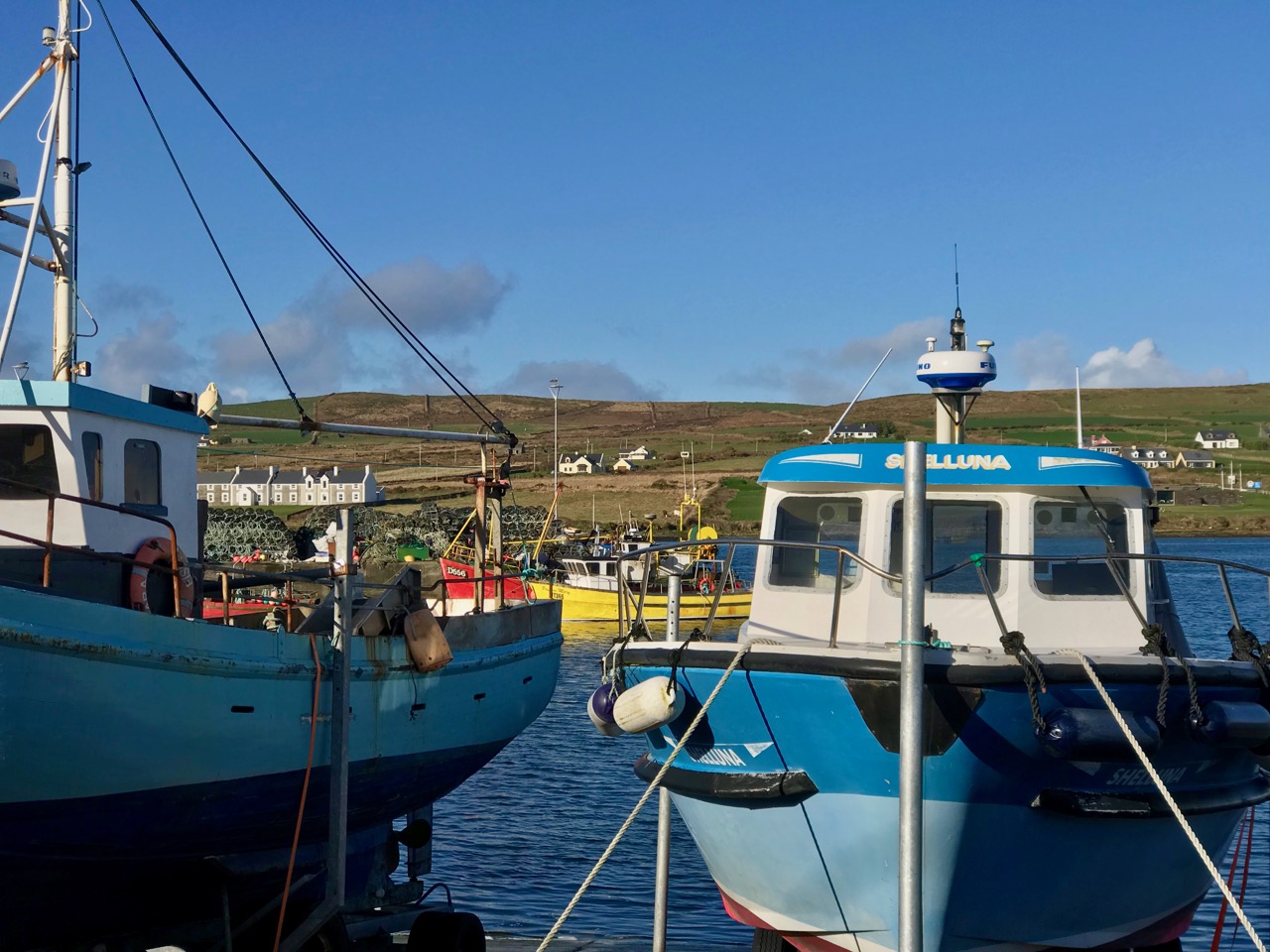 Our sea journey was on board an aluminium fishing boat – there it is, below, with the island of Illaunloughan in the background.