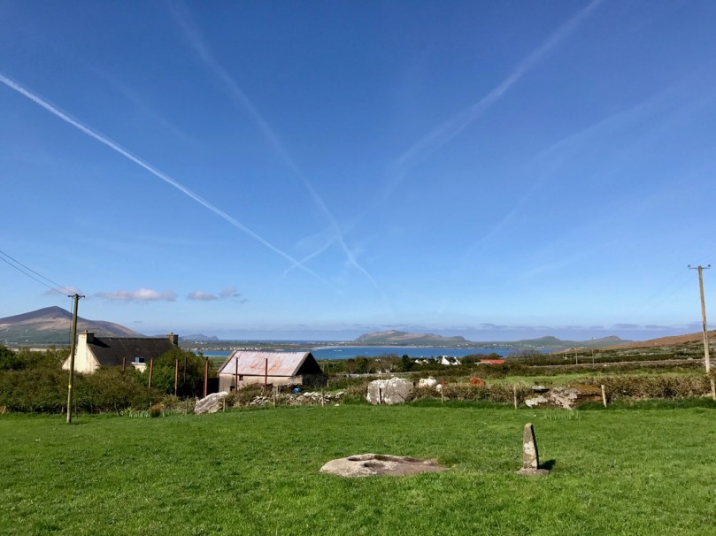The ongoing use of bullauns as fonts, stoops or holy wells does not explain their original purpose (which is probably pre-Christian: here’s an interesting conjectural world view of the phemomenon), and it’s quite likely that we will never fathom for sure what they were for. The example above, at Kilmalkedar, Co Kerry is as enigmatic as they will get, with its multiple ‘basins’ carved into a large earth-fast boulder isolated in the middle of a field, although not far from a remarkably complex ecclesiastical site. But the one I find the most fascinating can be found along the Priest’s Leap road, a mere few steps away from our own home in West Cork . . .
