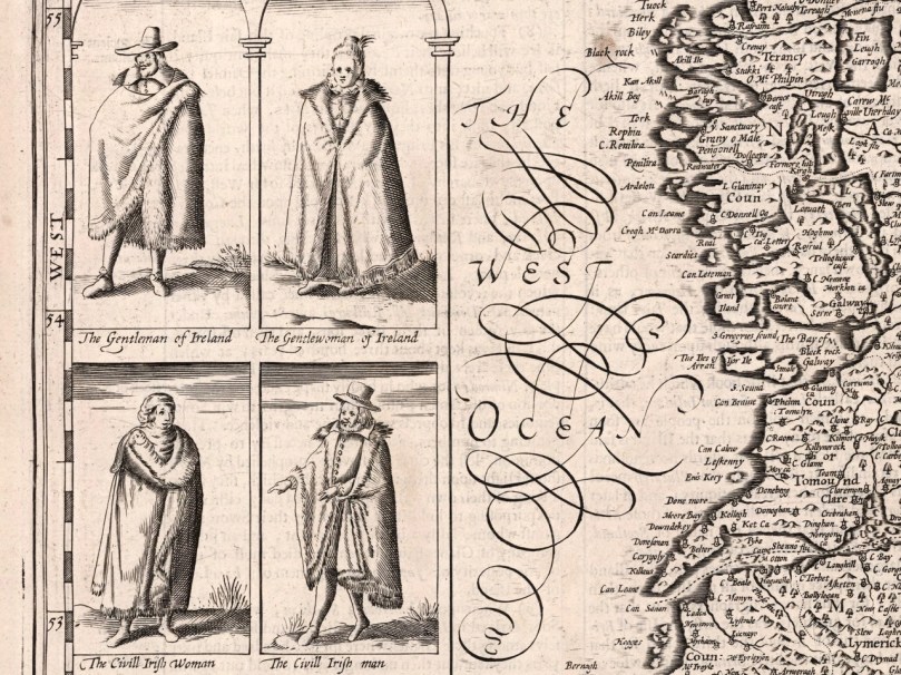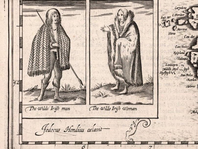 True to his day, he depicted the Irish quite differently from the British – the lowest grade of English person was the Countryman or Country woman, whereas in Ireland it was the Wilde Man or Woman.