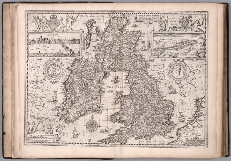 Along with his Atlas he produced a work that combined history and geography – the Invasions of England and Ireland, in 1601 and 1627. He was, of course, a devoted subject of the Queen (‘her sacred maiestie’) and his political opinions tended to the conservative, if not puritantinical.