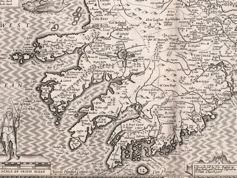 Maps drawn by a colonising power, have an agenda far beyond simply charting the territory. John Speed’s became the defining maps of the expanding British Empire during the seventeenth century and indeed they influenced British people’s perceptions of the world until well into the eighteenth. For us in Ireland, and in West Cork, they are an invaluable social document.
