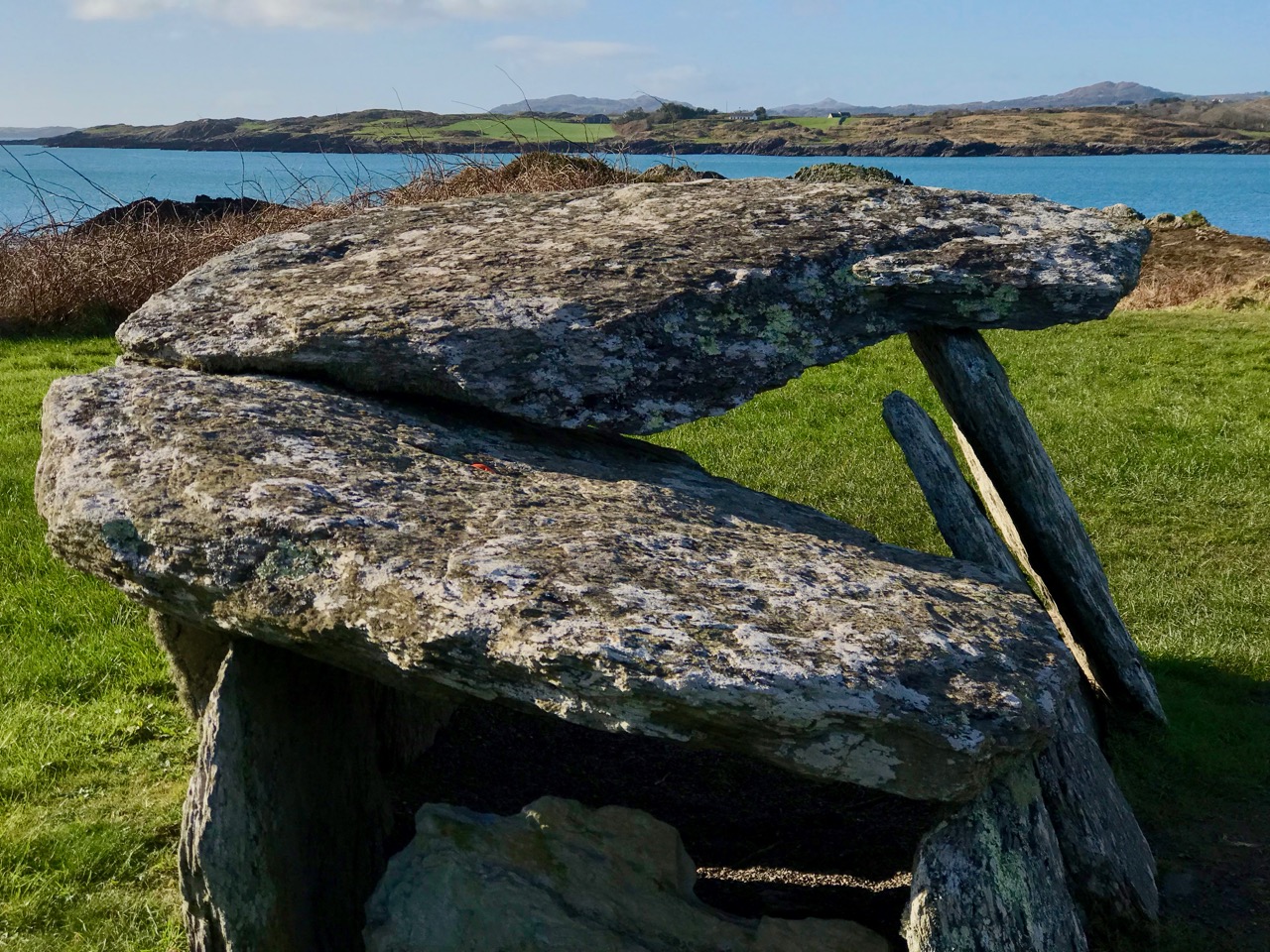I can’t tell you for sure where this arch was constructed, only that it ‘looked out over the harbour at Castletownshend’. I am speculating that the site was where I have indicated in the above aerial view. My reason for suggesting this is that is an old archaeological record shown on the earliest Ordnance Survey maps states that ‘a structure’ existed at this spot. Evidently a plaque (now lost) was placed on the ‘structure’ setting out its origin: