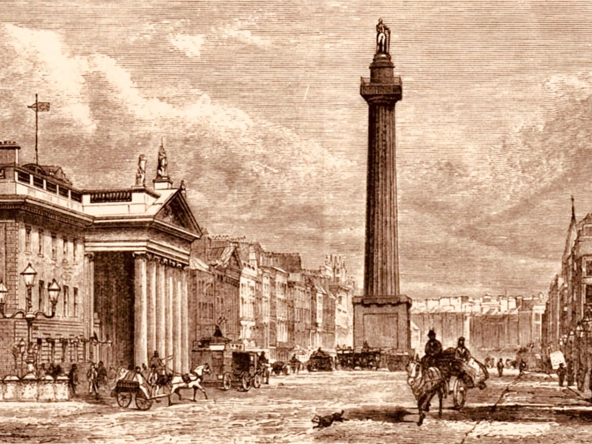 The idea of twelve hundred men – and eight masons – building this structure is hard to ponder. The Battle of Trafalgar took place on 21 October 1805. Subsequently, of course, two further notable monuments to Nelson were erected: the column in Trafalgar Square, London, was completed in 1843 to a design by the architect William Railton at a cost of £47,000. It’s still standing, guarded by its four bronze lions, which were added by Sir Edward Landseer in 1867. Its height (to the tip of Nelson’s hat!) is 51.59 metres. But Dublin City Centre also had a Nelson’s ‘column’:
