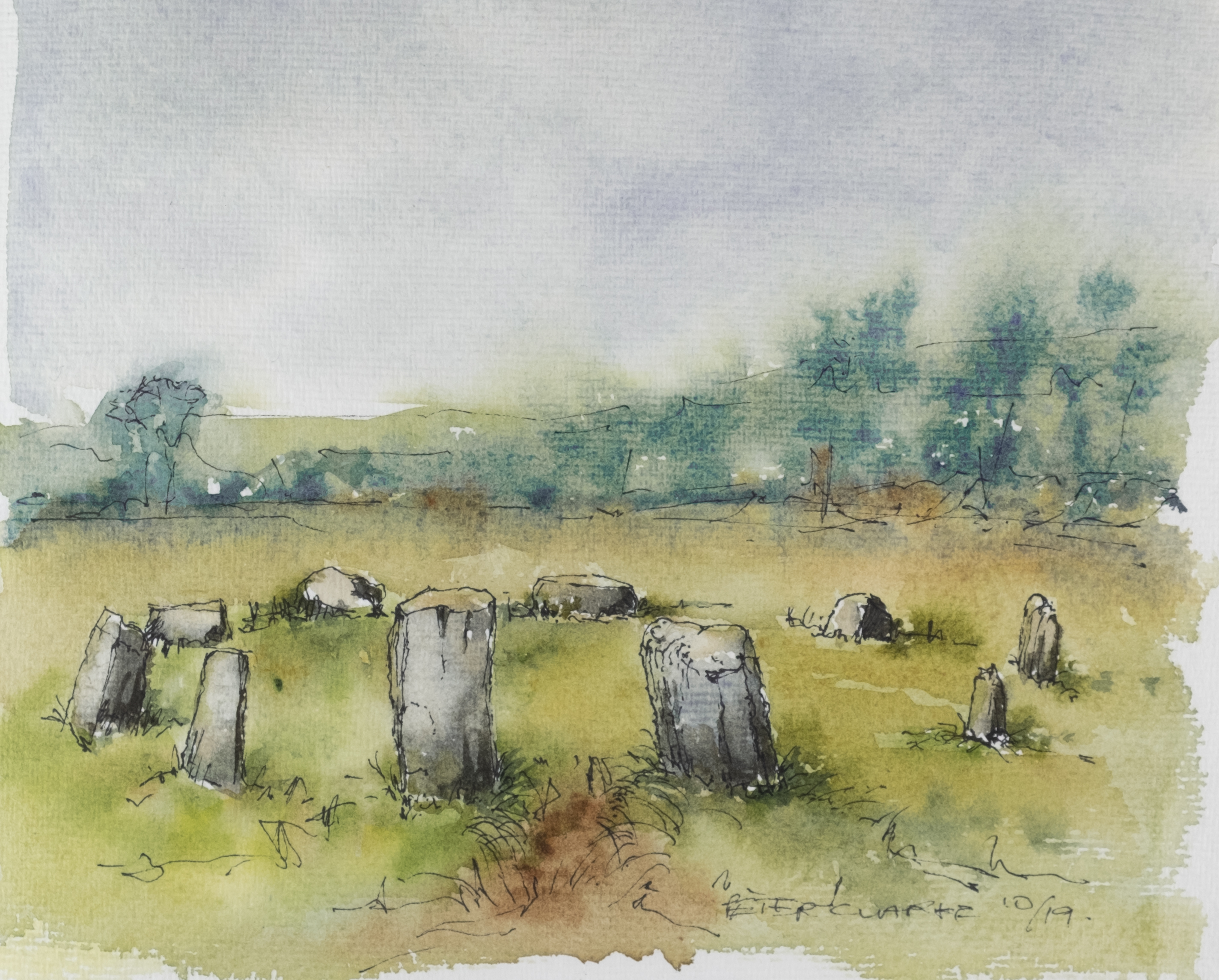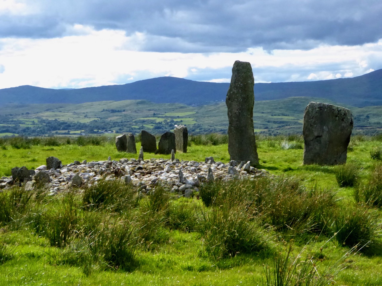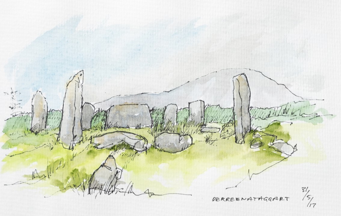 I’ve been wanting for a long time to do a proper treatment of the prehistoric Stone Circles that dot our West Cork landscape. When you write about archaeology there is no substitute for on-the-ground observation. Only by spending time at each monument do you become more alive to their presence in the landscape, their orientations, their similarities and differences. Travel restrictions this year made field trips more challenging and there are still a few on my list to see, but most of the ones we saw are so isolated and in such spectacular settings that it was a joy to plan and write this series. That’s Glanbrack Stone circle below, with a pair of stone outliers (taken in a big hurry as a slurry tank was heading into the field). You can start with The Stone Circles of West Cork: An Introduction (written in 2019), and move one to Multiple Stone Circles, Five-Stone Circles and finally the Discussion.