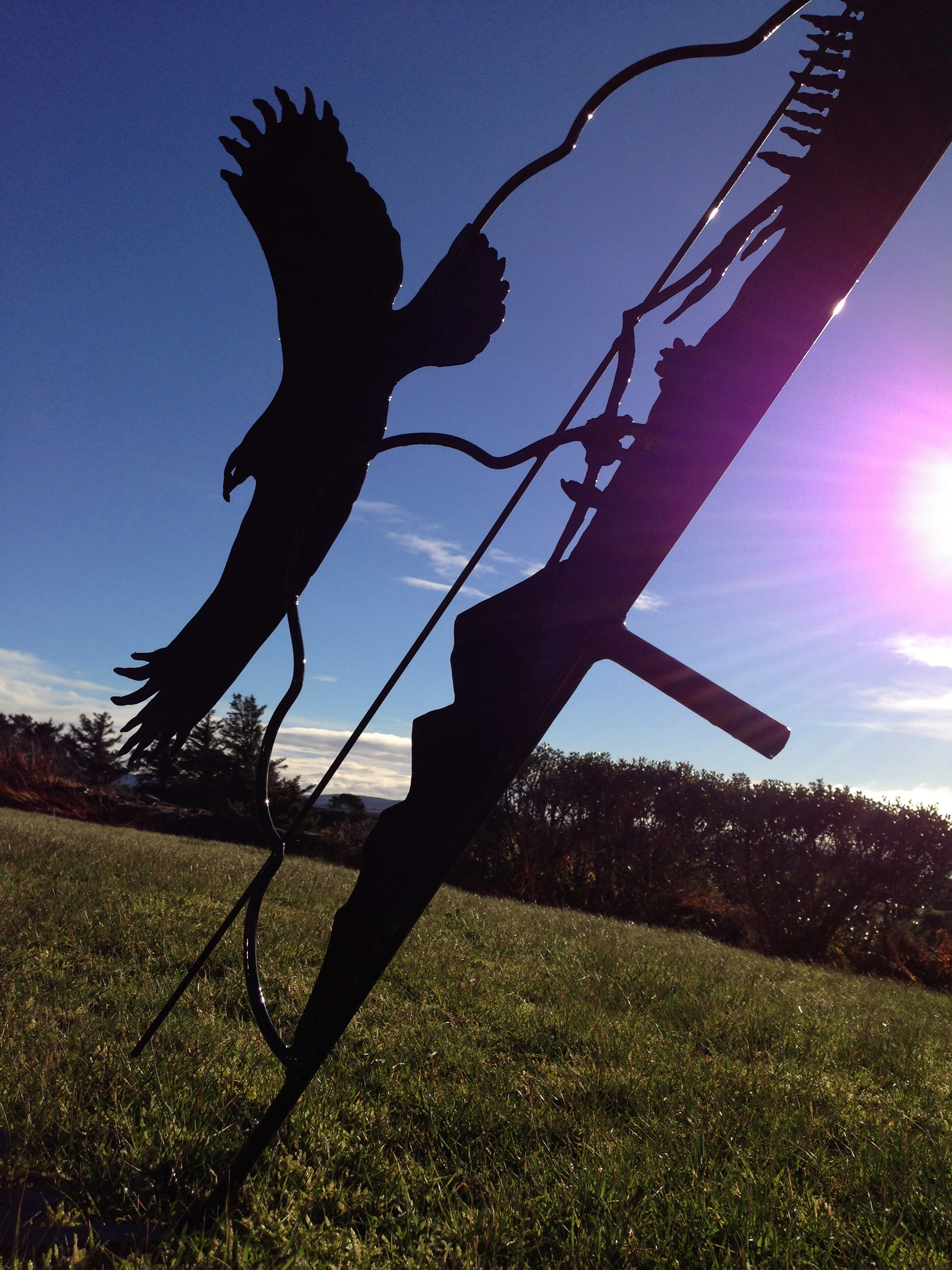 ‘Hurricane’ on the Beaufort scale means wind speeds of 118 km/hour or more. We went to bed on St Stephen’s Day evening, having measured the wind speed outside as 87 km/h. That seemed wild to us: the trees were bent over and the salt laden rain and sleet were coming in horizontally and lashing our south west facing windows. It was hard to sleep: the slates were rattling loudly above us and the aerials and lightning conductors on our roof were shrieking and bending. The noises got louder and more terrifying as the night went on. I wanted to venture outside with my little hand-held anemometer but I couldn’t face it. The violent storm began to abate only in the early hours of the morning and, when we did creep out, it was to find some damage: two trees down in the haggart, sadly, and our beautiful weather vane collapsed. It was as well that we weren’t underneath when the flying Eagle and its sharply pointed arrow came crashing on to the lawn, just missing our door.