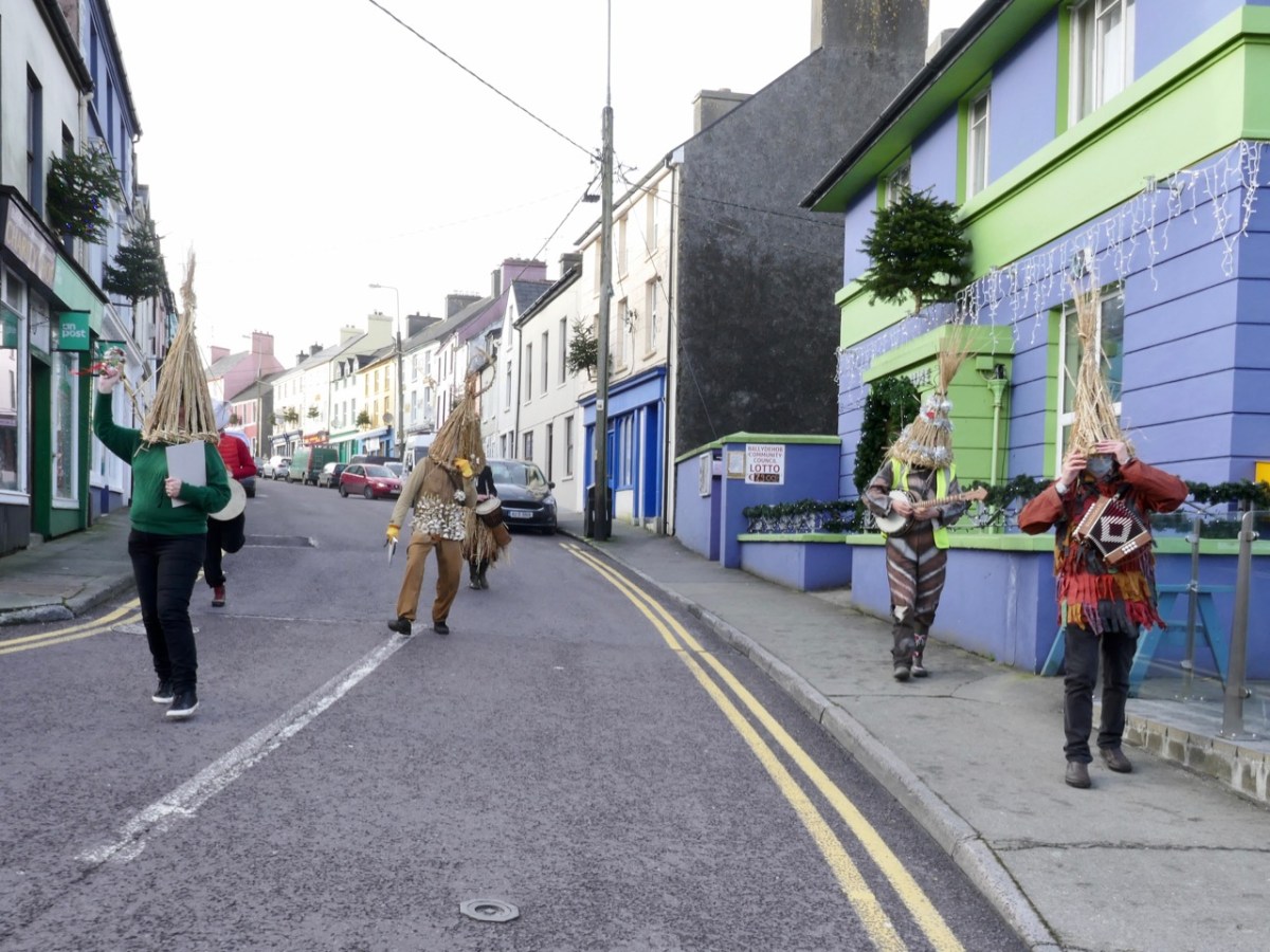 In Ireland, the Wran Day tradition is accompanied by a play in some places, but more usually it’s a procession through a community, involving interaction by going into houses and shops, making a lot of noise and generally stirring up the spirits with a bit of mischief-making. We were fairly passive this year because of Covid restrictions, but it felt good to be out and about. Let’s hope that this anomaly in the regularity of daily life can become more marked as things gets back to near normal in future years!