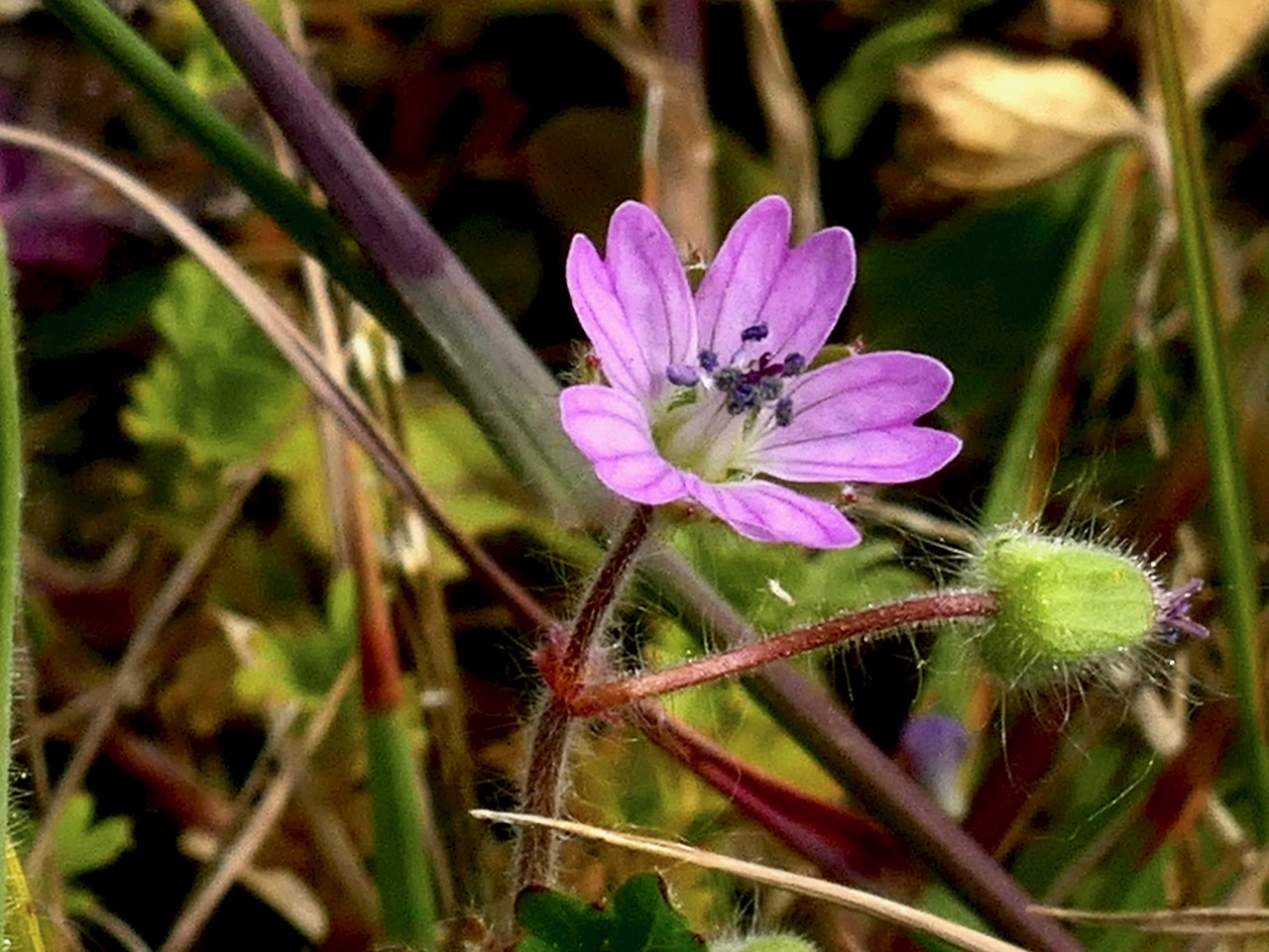 Finally, I try to mow as little as possible and I have changed my mindset about ‘weeds’ and such concepts as ‘curb appeal’ and ‘tidiness.’ True gardeners would be horrified, but the insects don’t seem to mind. A tiny rare plant, Sharp-leaved Fluellen (below), showed up on my driveway, who knows how – but if the ‘weeds’ had been eliminated, I would never have found it.